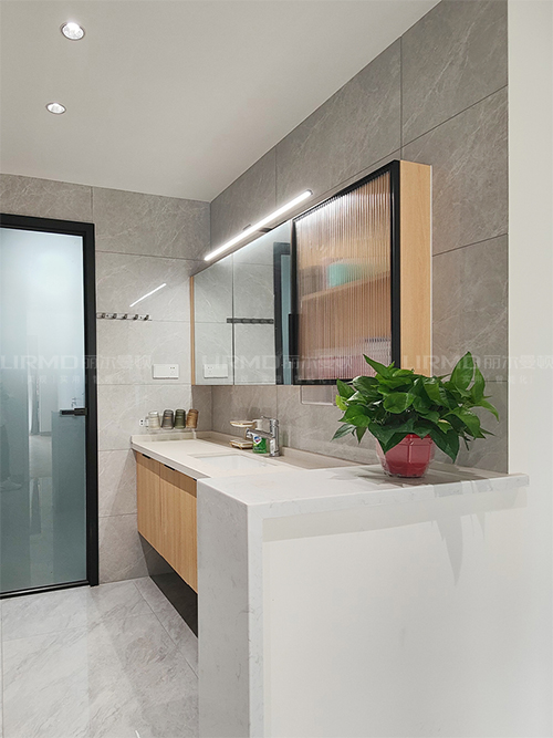 洗漱柜半墻設(shè)計(jì)真的顯大又好看,鏡柜還可收納,減少洗手臺(tái)的負(fù)擔(dān)