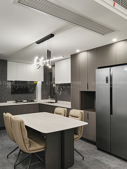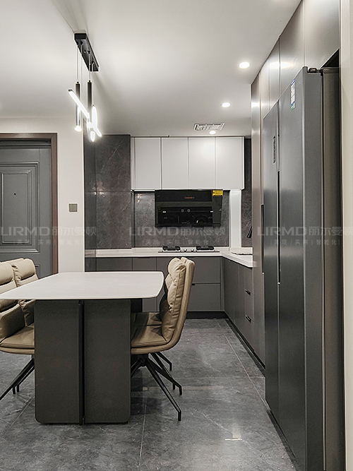 L型開放式廚房連接3平米餐邊柜,分擔(dān)了廚房收納還可以減少了儲物壓力,