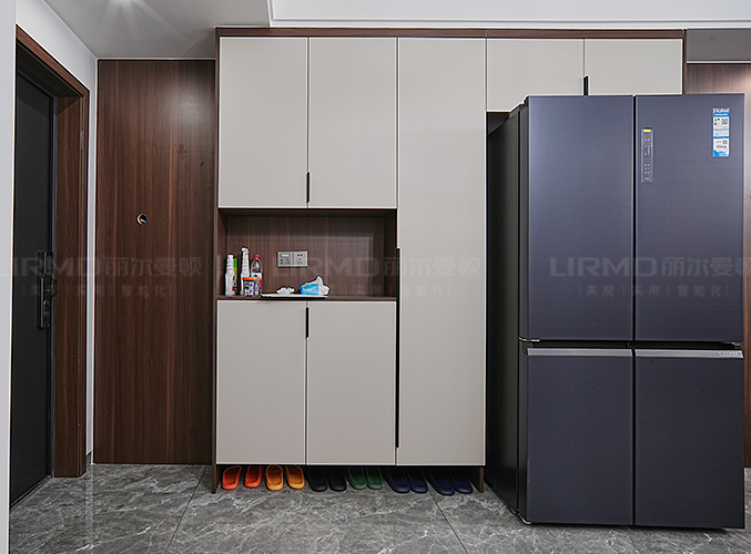 入戶玄關(guān)柜,可作為鞋柜/衣柜/收納區(qū),淺色柜門(mén)加深色柜體的碰撞,視覺(jué)效果更好,