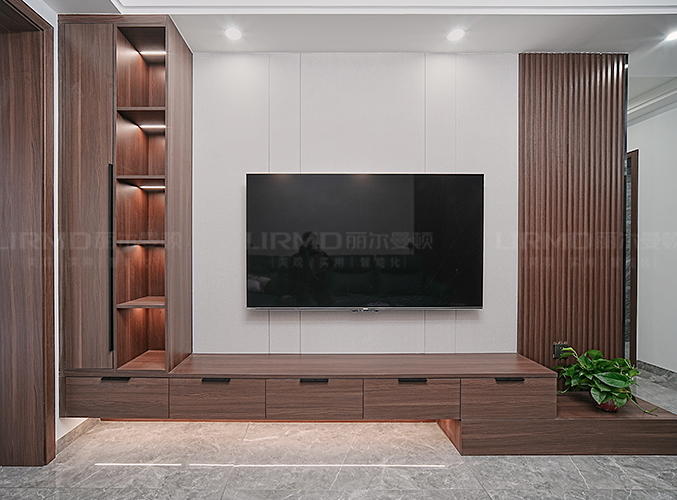 全屋通鋪瓷磚,視覺(jué)上看起來(lái)更顯大氣,電視柜抽屜柜搭配展示柜, 美觀又實(shí)用!