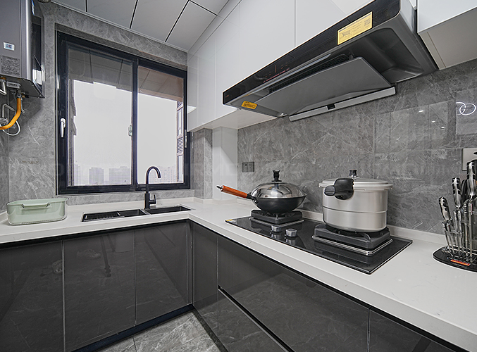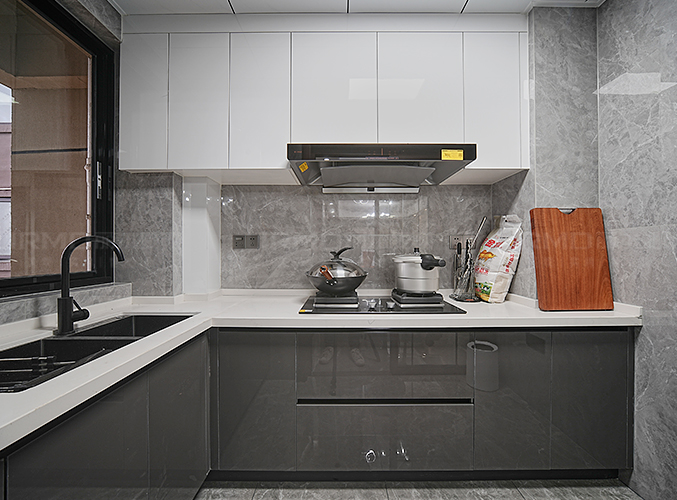 簡(jiǎn)約大氣,上下方都有收納柜,視覺(jué)層次更加豐富,分擔(dān)了廚房收納還可以減少了儲(chǔ)物壓力。