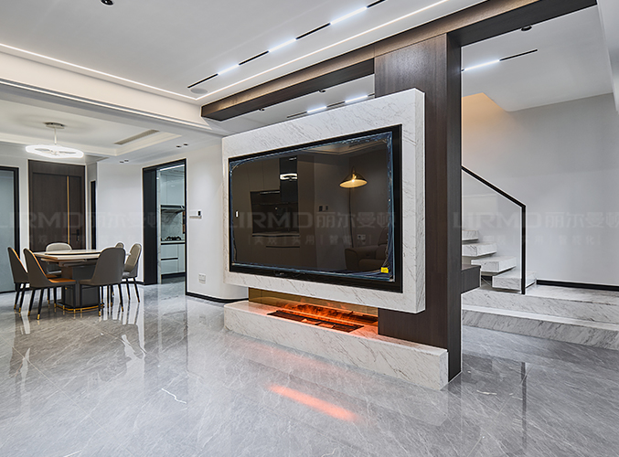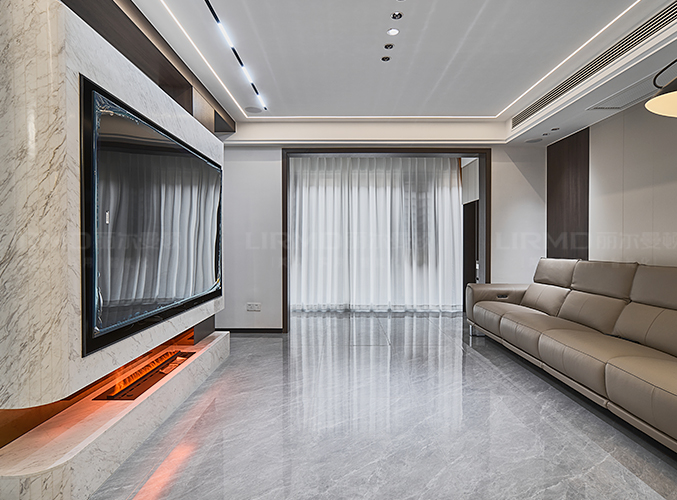 全屋瓷磚通鋪,顯大顯明亮,采光好,內(nèi)嵌式電視背景墻設(shè)計(jì),方便實(shí)用。