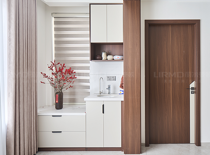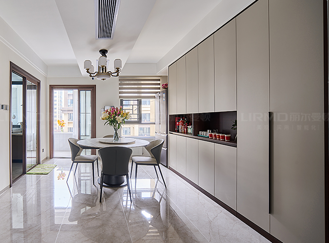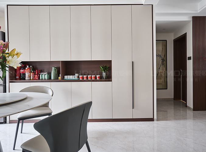 整體的墻柜很好的利用空間,收納大大的提升,無拉手設(shè)計,更顯極簡。