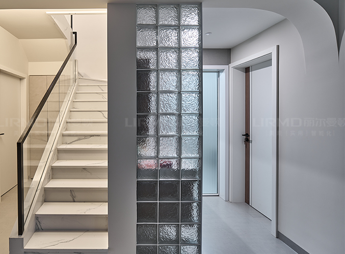 原墻體拆除用玻璃磚做隔斷,透光不透人,具有設(shè)計(jì)感。