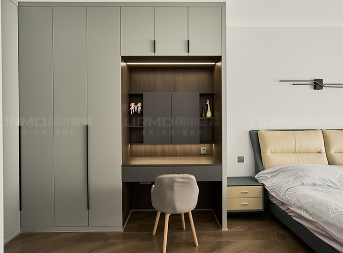 衣柜書桌一體化設(shè)計(jì),學(xué)習(xí)辦公兩不誤,實(shí)木柜體搭配PET膚感柜門,質(zhì)感超不錯(cuò),