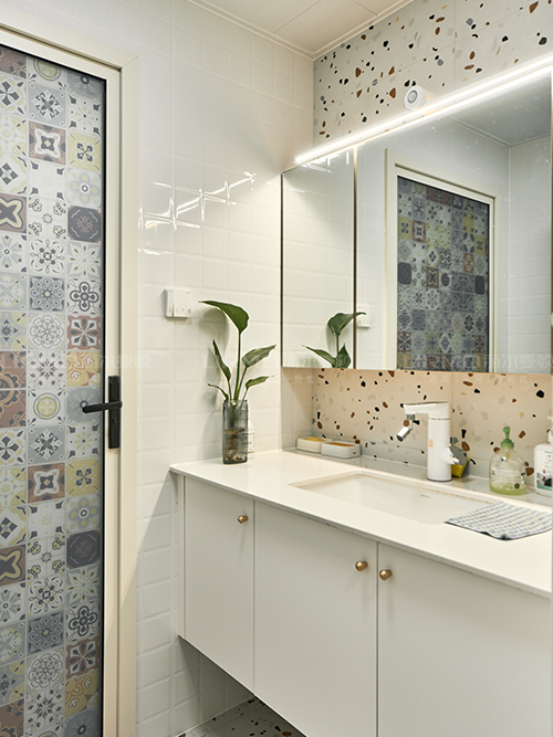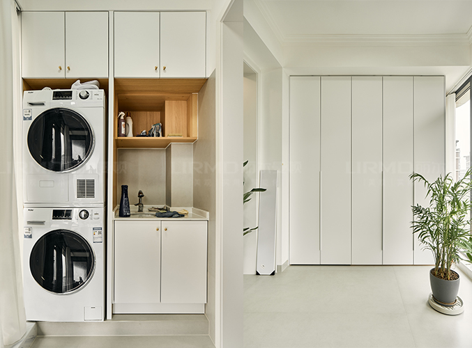 陽臺采光好,內(nèi)嵌式洗衣機(jī)設(shè)計,加上洗漱柜設(shè)計,不占空間,一門到頂柜子設(shè)計,盡顯大氣。