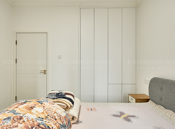 整體的墻柜很好的利用空間,收納大大的提升,無拉手設(shè)計,更顯極簡。