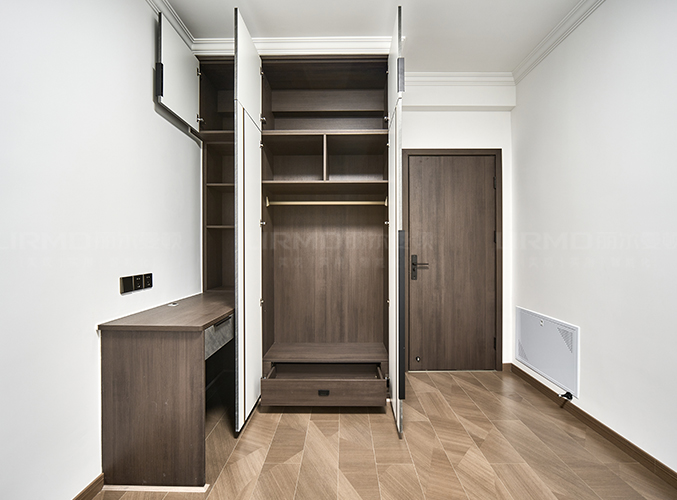 18mm厚杉木芯板,長廊兩側(cè)分別置鞋柜和儲物柜,視覺效果更好,下方懸空設(shè)計,好放置鞋子,