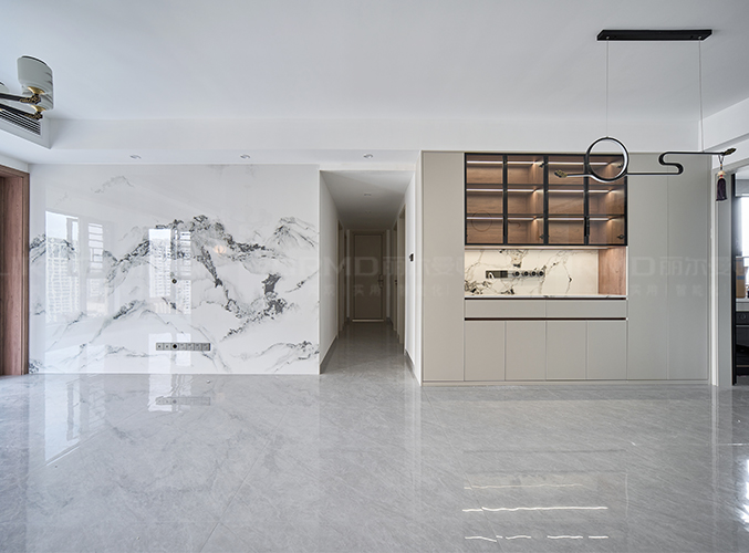 整墻做內(nèi)嵌電視背景墻,不占空間,吊燈設(shè)計,增強(qiáng)照明實用性的同時又增貼了空間藝術(shù)感,