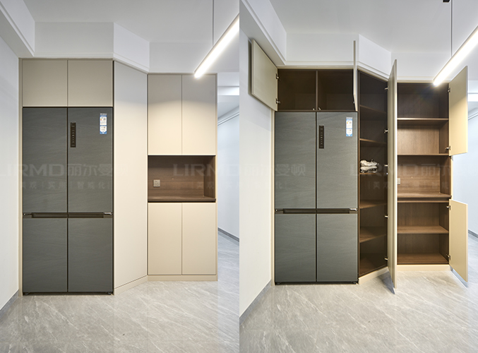 實(shí)木柜體搭配PET膚感柜門,質(zhì)感超不錯,多組一門到頂柜子設(shè)計更是實(shí)現(xiàn)收納需求,