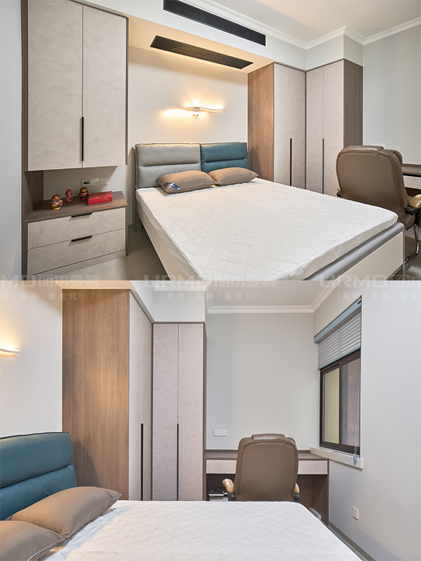 10、柜體采用足18厚杉木芯板,柜門(mén)采用LSB板PET膚感柜門(mén),一門(mén)到頂,五金使用原裝進(jìn)口的百隆五金