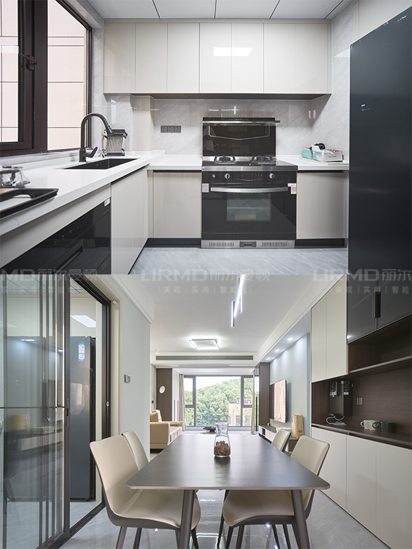 全房共定制了10個(gè)柜子,柜體采用足18厚杉木芯板,柜門采用LSB板PET膚感柜門,一門到頂,五金使用原裝進(jìn)口的百隆五金