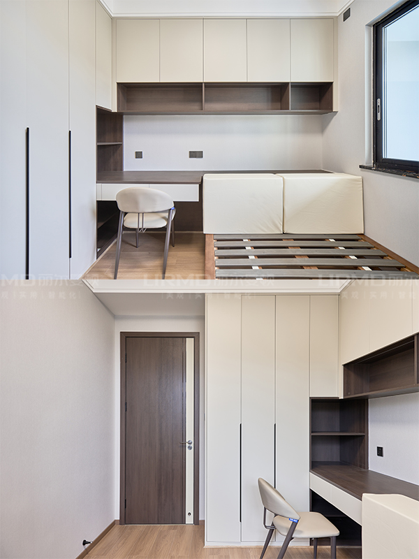 收納柜書桌一體設(shè)計(jì),充分利用房間的各個(gè)空間