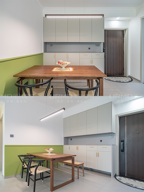 全屋高端定制:柜體板材18厚杉木實(shí)芯板,柜門(mén)有pet膚感、高光、超晶、五金使用原裝進(jìn)口奧地利百隆五金