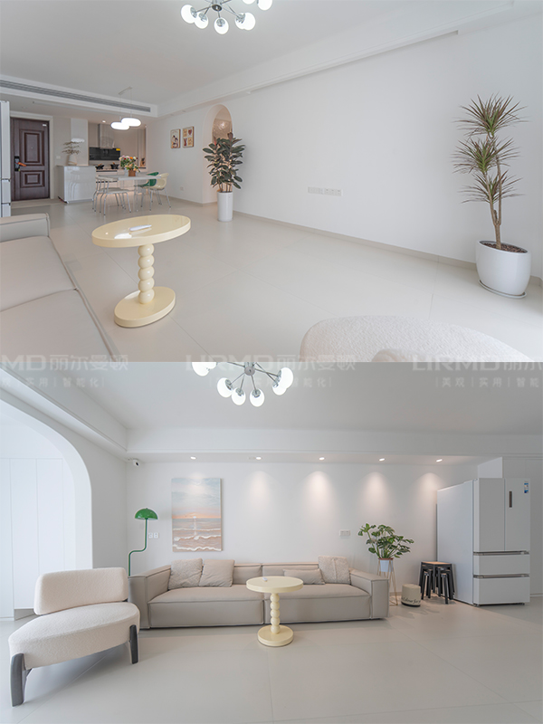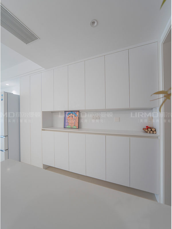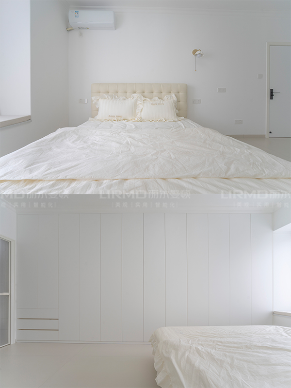 ?無(wú)論是墻面、頂面、還是柜子,該案例整體采用奶白色色系搭配,非常柔和治愈。?