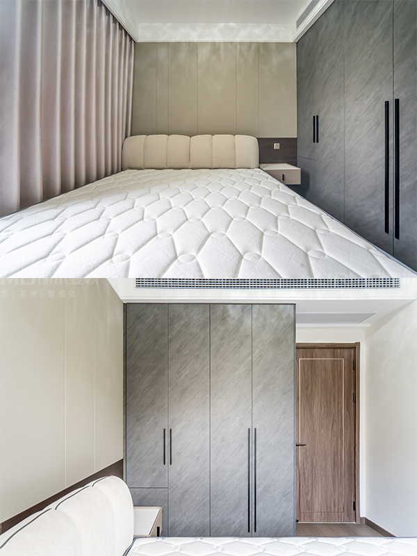 柜體采用18厚杉木芯板,柜門采用歐松板PET膚感柜門,
