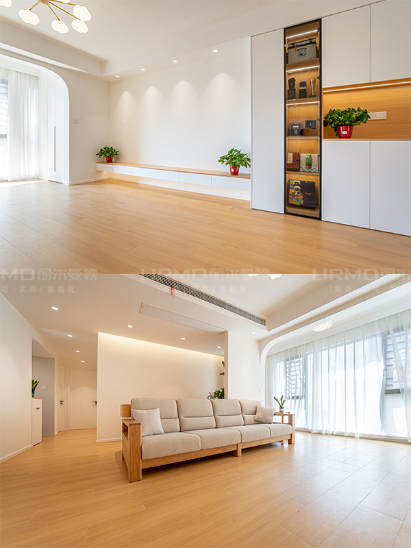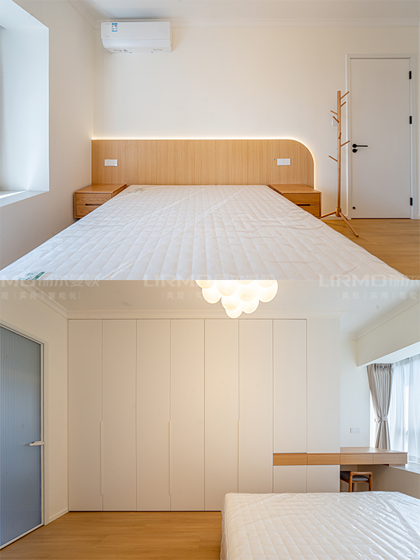 雙眼皮吊頂搭配暖色系氛圍燈,打造溫馨簡約的舒適環(huán)境