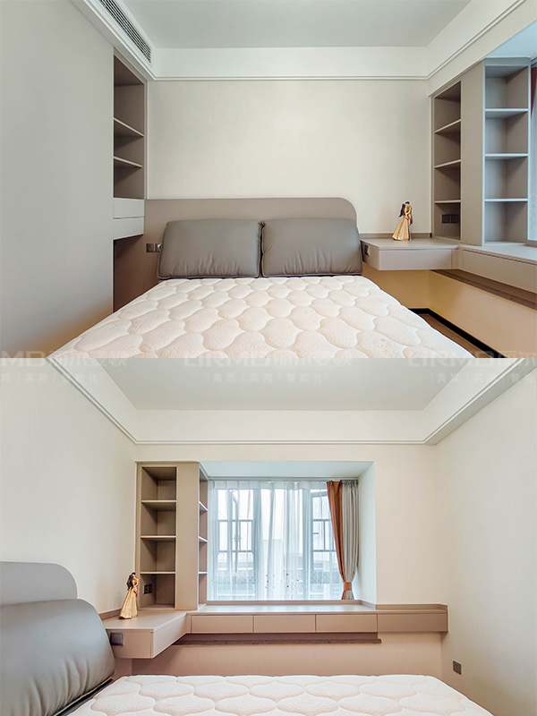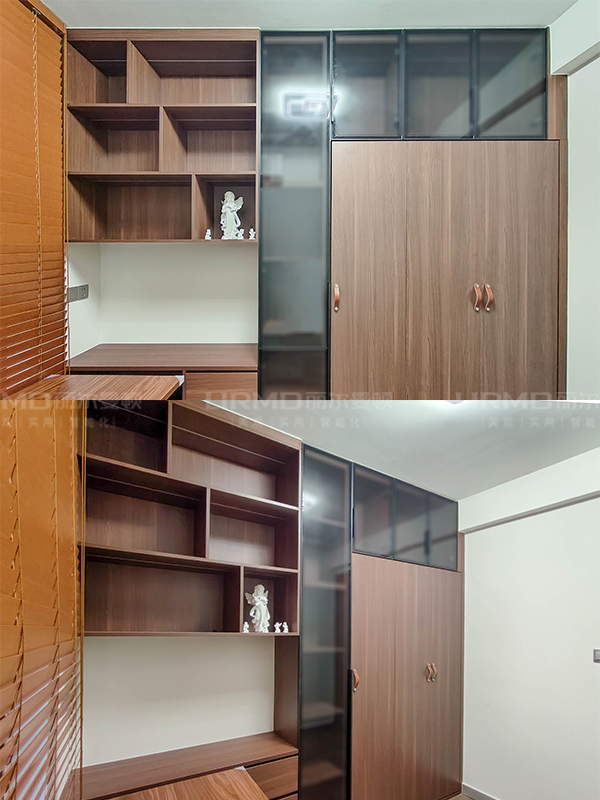 臥室衣柜采用書柜一體化設計,更大限度的利用空間