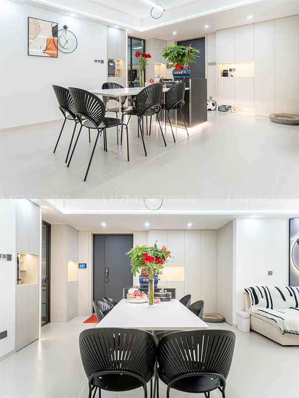 餐島一體化設計,大幅度節(jié)省空間也提升餐桌的功能性使用