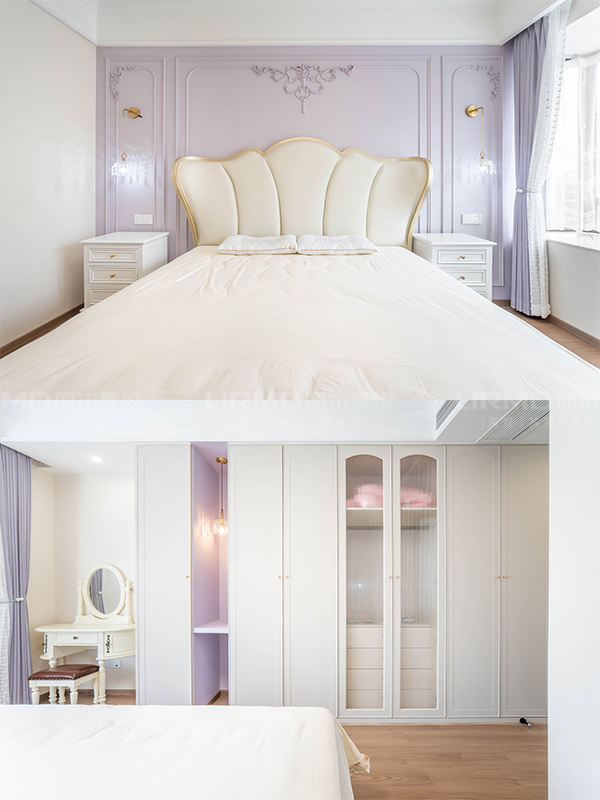 長(zhǎng)沙靠譜裝修公司,長(zhǎng)沙靠譜全屋定制,臥室衣柜加梳妝臺(tái),復(fù)古法式風(fēng),