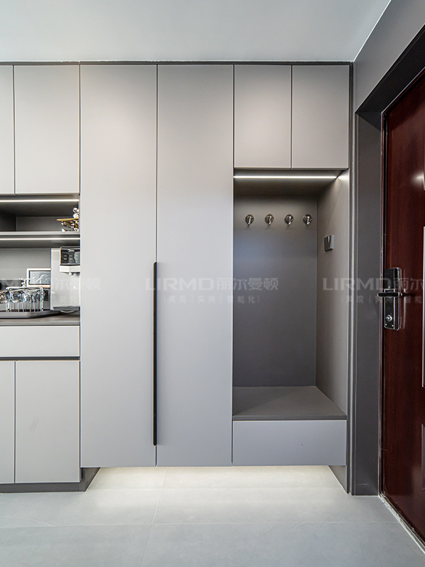 全屋高端定制:柜體板材18厚杉木實(shí)芯板,柜門有pet膚感、高光、超晶、五金使用原裝進(jìn)口奧地利百隆五金