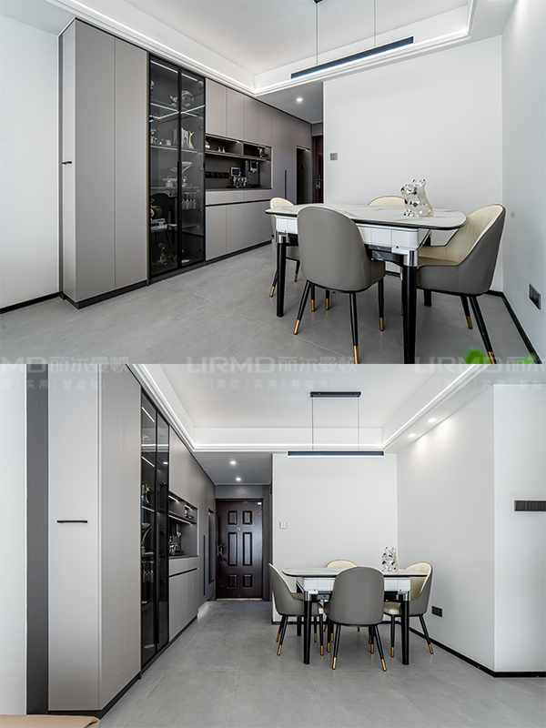 玻璃柜門搭配木質(zhì)柜門,增加層次感,減少厚重感