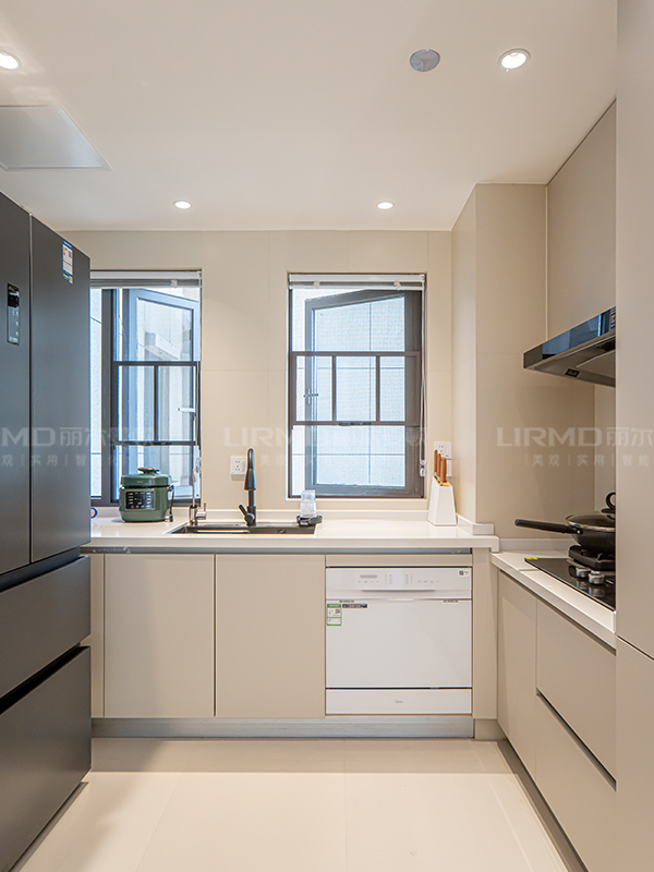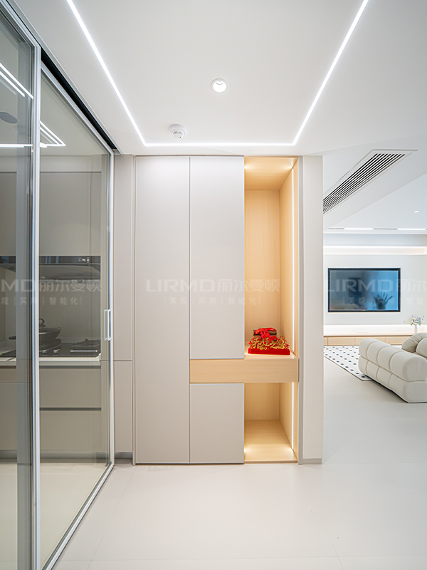 廚房改成半開(kāi)放式設(shè)計(jì),連接入戶玄關(guān)設(shè)計(jì),整體更加通透、有層次感