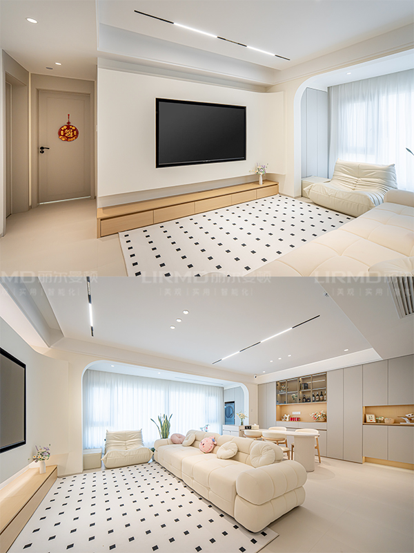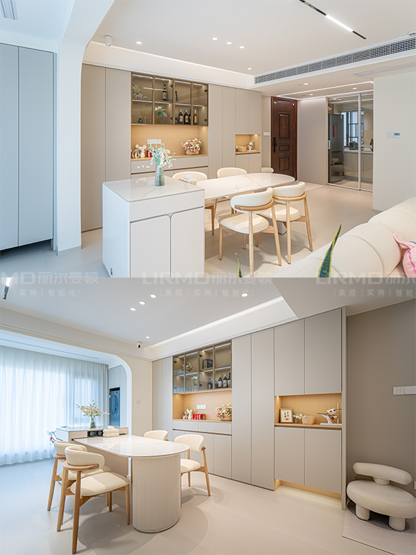 全屋整體運(yùn)用大面積的奶白色,搭配原木設(shè)計(jì),打破傳統(tǒng)的奶油風(fēng)