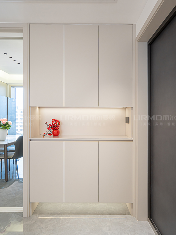 全屋采用象牙灰的柜體柜門,整體色調(diào)統(tǒng)一,溫暖又治愈