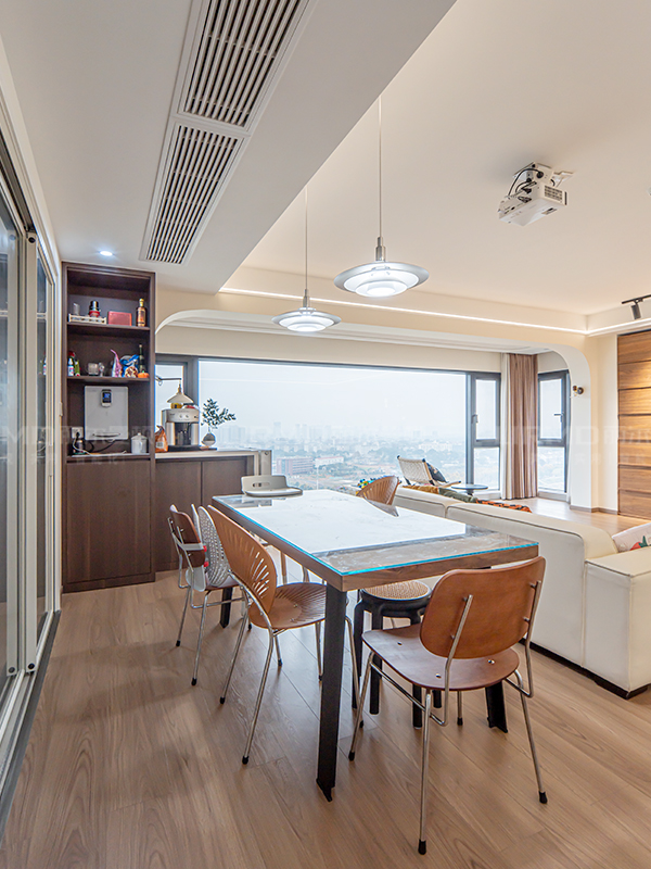 全屋通鋪木地板,搭配極簡(jiǎn)茶幾,更有中古的氛圍感