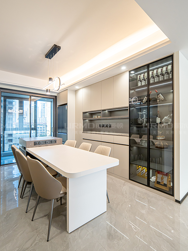 全屋高端定制:柜體板材18厚杉木實(shí)芯板,柜門有pet膚感、高光、超晶、五金使用原裝進(jìn)口奧地利百隆五金