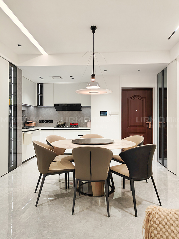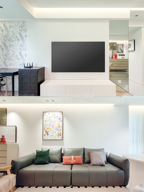 全屋通鋪 750×1500 瓷磚,整體通透大氣,L 型極簡(jiǎn)懸空電視柜又簡(jiǎn)潔大方還十分便捷,