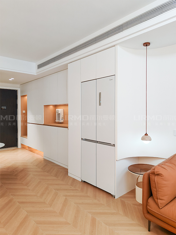 多功能入戶玄關(guān)柜,零嵌入冰箱,中間鏤空設(shè)計(jì),方便放鑰匙等物品,實(shí)用性拉滿