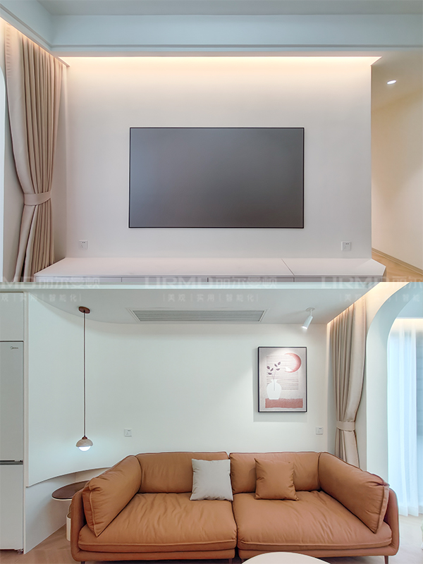 一字型懸浮電視柜,右邊切割設(shè)計(jì)不容易碰撞,大面積留白,簡(jiǎn)單耐看