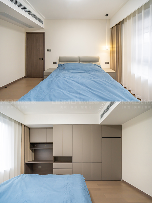 L 型懸浮床頭柜,右邊儲(chǔ)物柜,即使是小空間也能打造的如此溫馨實(shí)用