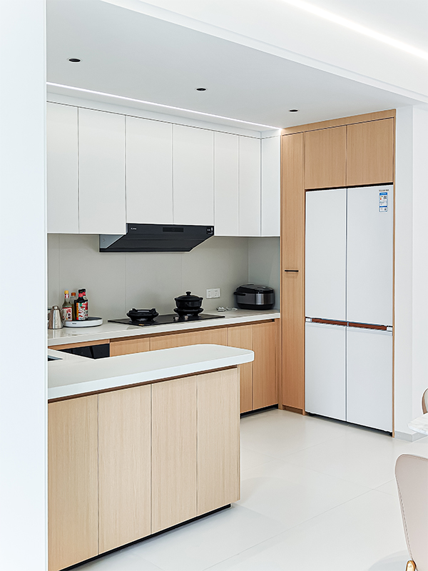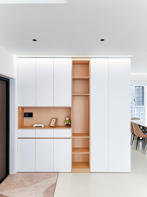 極簡(jiǎn)感貫穿整個(gè)空間,原木色淡化了極簡(jiǎn)風(fēng)帶來的疏離感,讓家有了溫度