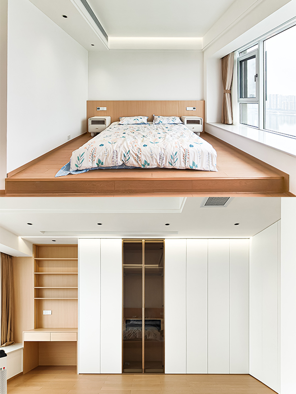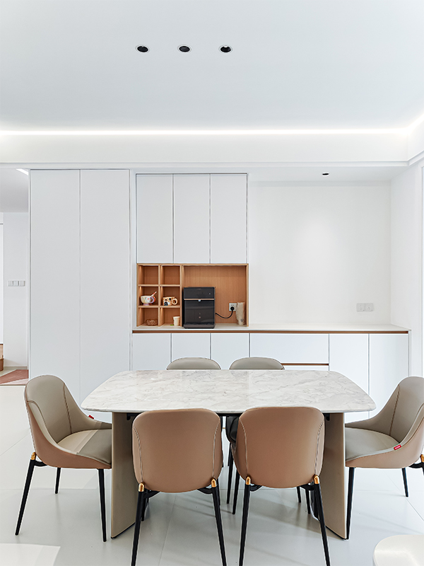 空間通透又明亮,搭配木色與白色,讓人感到時(shí)光靜好溫潤(rùn)自然的氣息