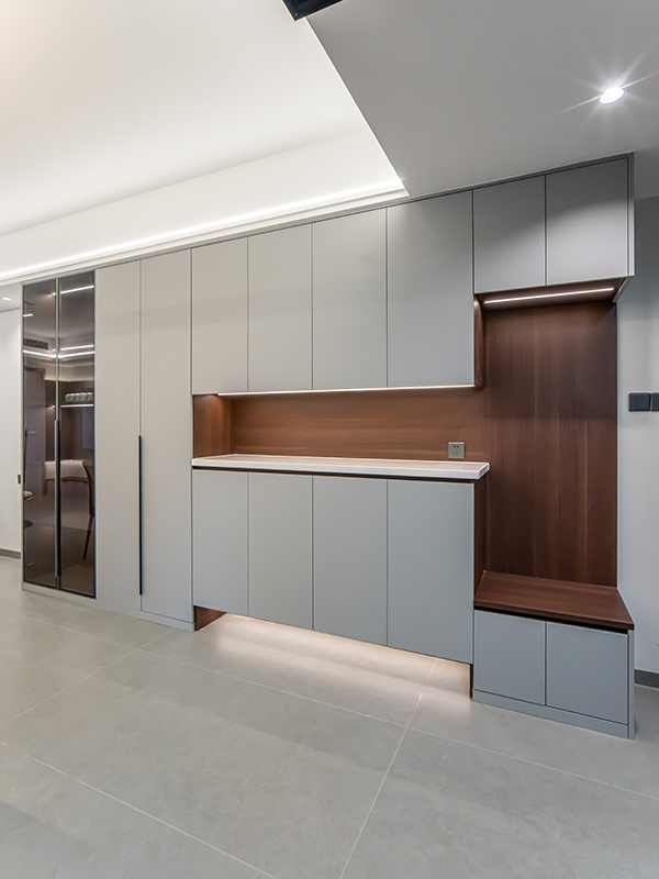 鞋柜結(jié)合裝飾柜一體,加大功能性,讓柜子的美感顯得格外精致,更具空間感有種聯(lián)動(dòng)性