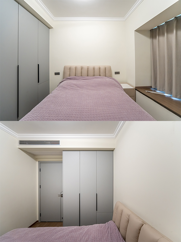 臥室衣柜小設(shè)計(jì),考慮衣柜的功能性,主臥床頭不對(duì)向衛(wèi)生間門(mén),超符合業(yè)主想法