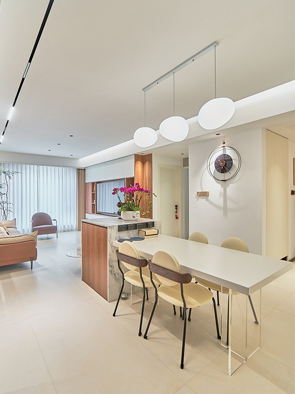 無主燈設(shè)計,既滿足了功能性需求,也增強了空間層次感,絕絕子