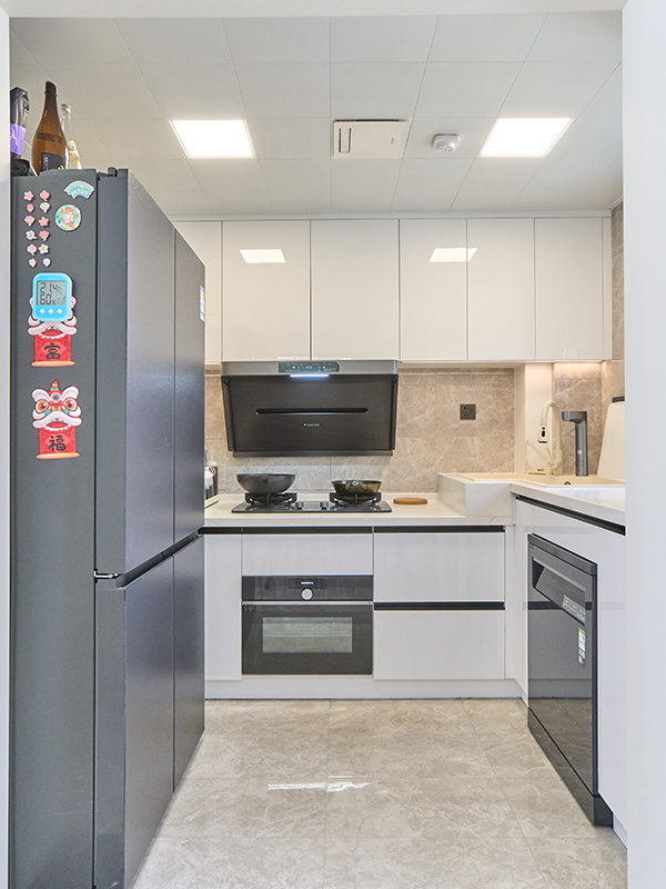 L 型櫥柜充分利用轉(zhuǎn)角空間,整體靈活多變,合理的動(dòng)線設(shè)計(jì)讓業(yè)主在烹飪時(shí)事半功倍