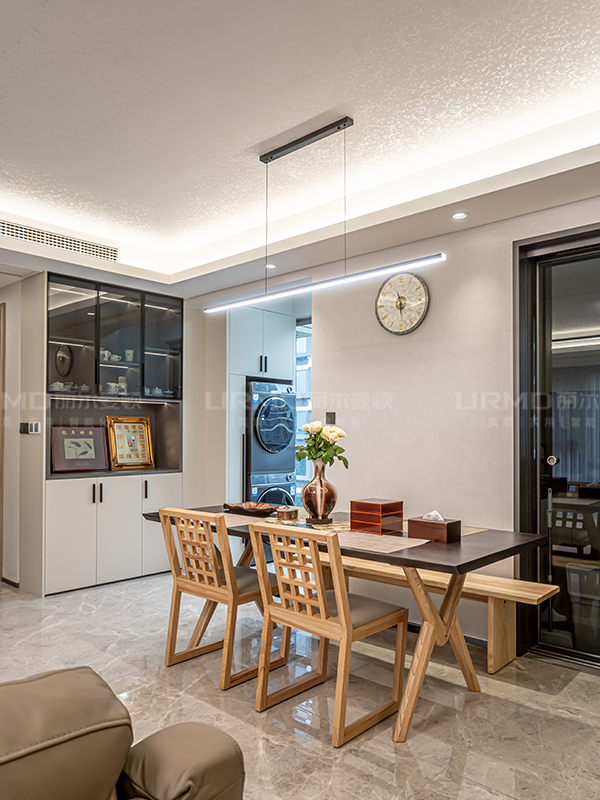 玄關加收納的轉角一體柜,銜接了玄關和客廳,讓整體空間更顯統(tǒng)一