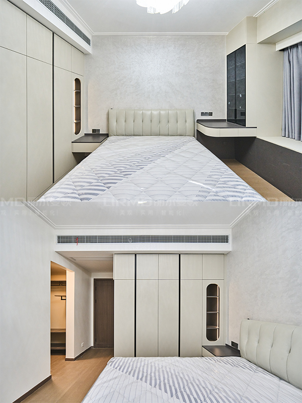 主臥衣帽間壁掛系統(tǒng)簡(jiǎn)約美觀,主臥飄窗梳妝辦公兩不誤