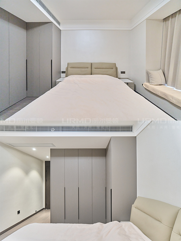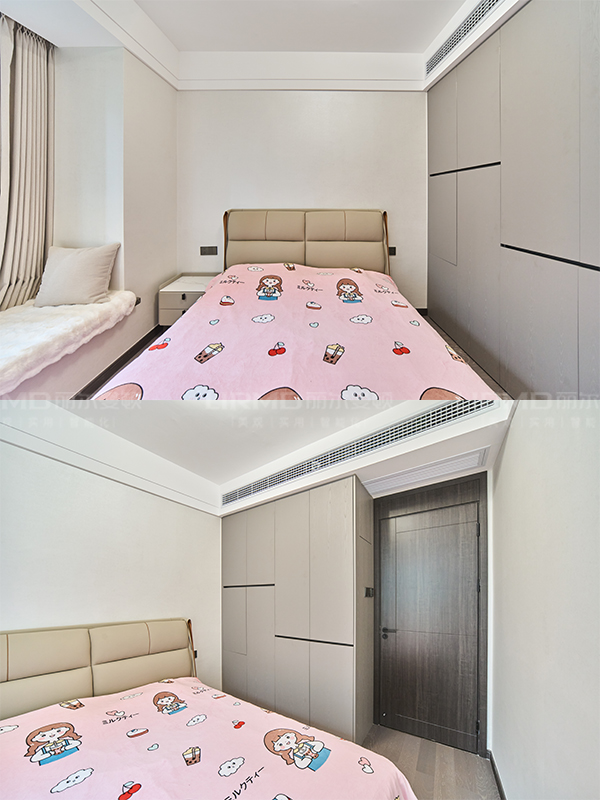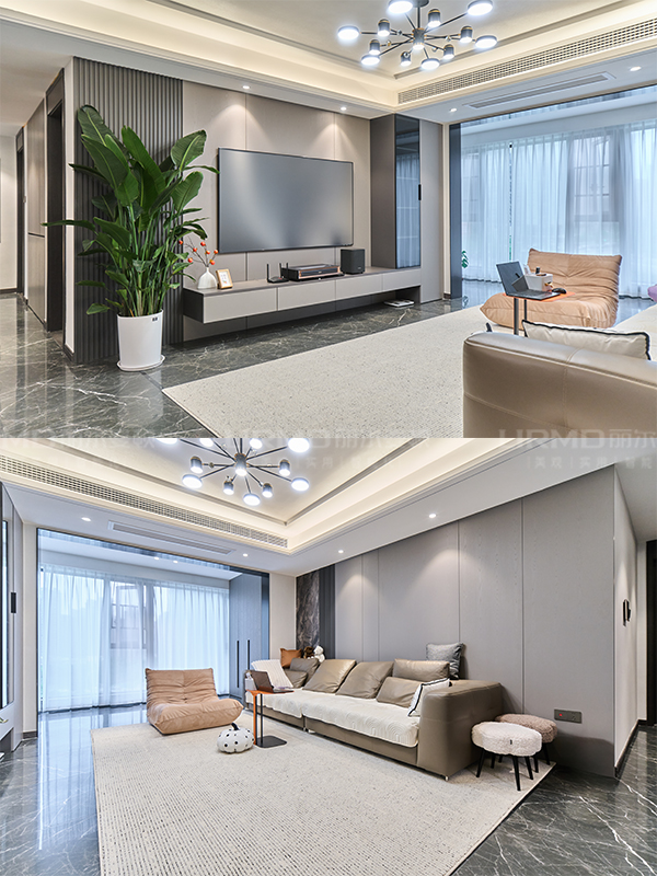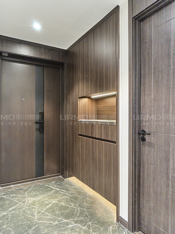 墻板運(yùn)用同色門板上墻穿插大理石紋路墻板,與暖色燈光相結(jié)合,讓沉穩(wěn)的空間也不失溫馨