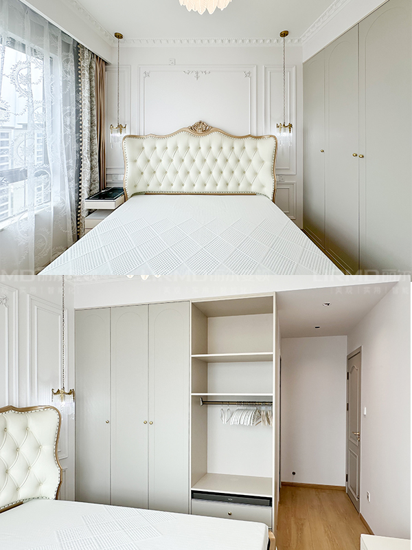 長(zhǎng)沙靠譜裝修公司,長(zhǎng)沙靠譜全屋定制,臥室衣柜加梳妝臺(tái),法式奶油風(fēng),