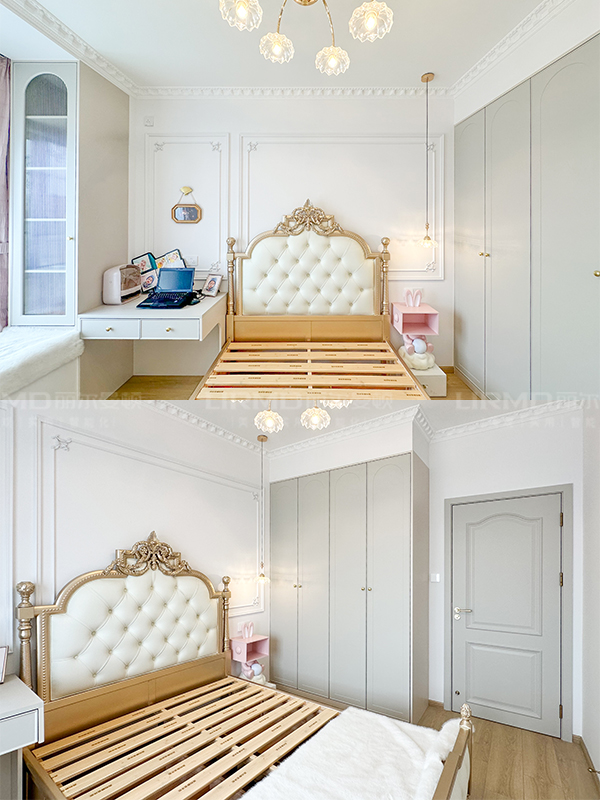 墻上頂上的PU線條、精致的吊燈、柔軟的窗簾以及各種浪漫的裝飾品,讓空間更具法式韻味