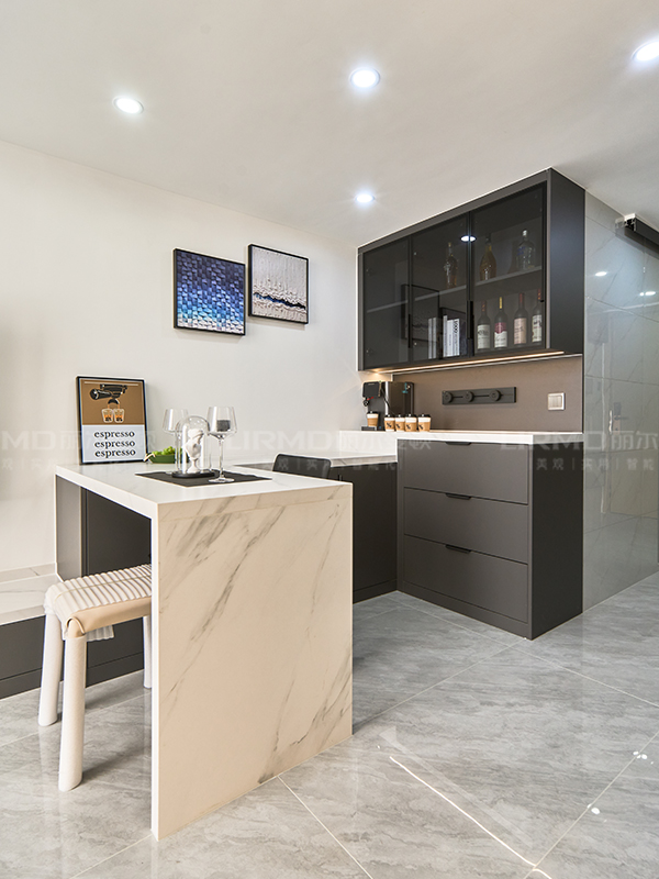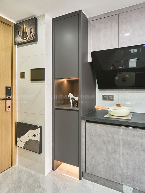 配色簡(jiǎn)潔、耐看,選用的濟(jì)州灰雙飾面板材和淺色的軟裝相互照應(yīng)