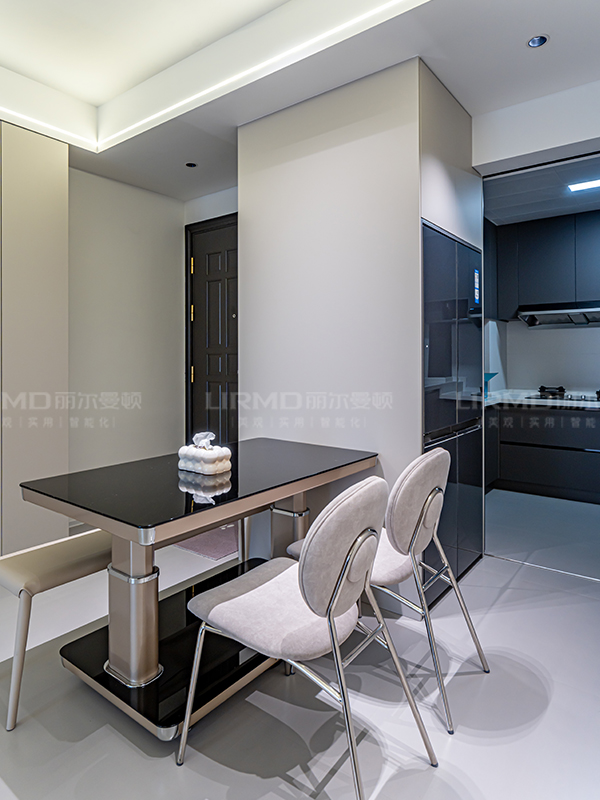 整體空間用極簡的黑白灰做設(shè)計,把空間的色調(diào)固定住