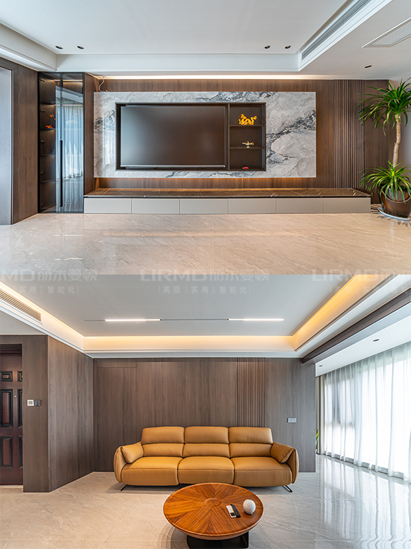 懸浮大理石電視柜與木質(zhì)的溫暖搭配,營(yíng)造出沉穩(wěn)內(nèi)斂之感