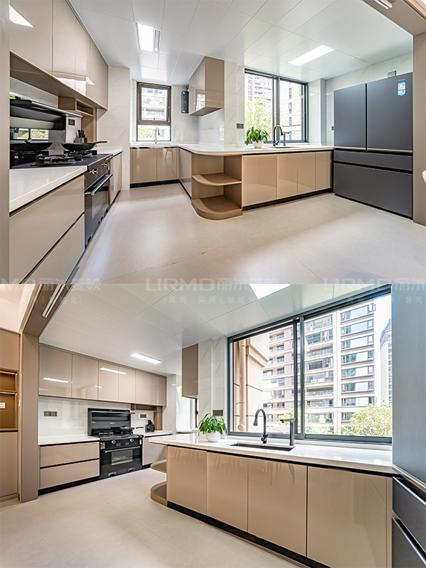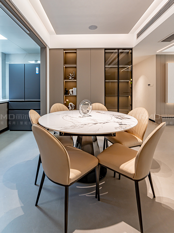 整體采用U型無拉手卡槽設計,更能貼合生活細節(jié),書柜位置搭配玻璃展示柜,讓空間層次感更加分明,整體設計新穎別致
